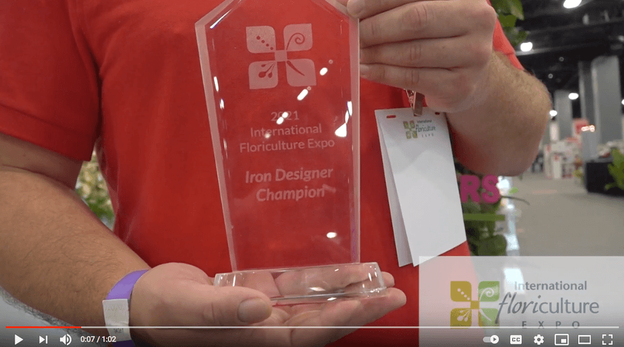 Iron Designer is the biggest and most energetic event at IFE. The competitors are challenged to create a design they best feel represents the theme with only the supplies provided and this year’s newly named flower. Adding to the excitement of the event, competitors are given only 20 minutes to complete their masterpiece. This year’s theme was Miami Vacation Vibes and the competitors had to use the newly named flower, Sarah’s Brush, within their design. Although there were numerous amazing arrangements, Steven Santos, AIFD, was crowned the 2021 Iron Designer Competition Winner.